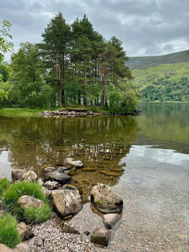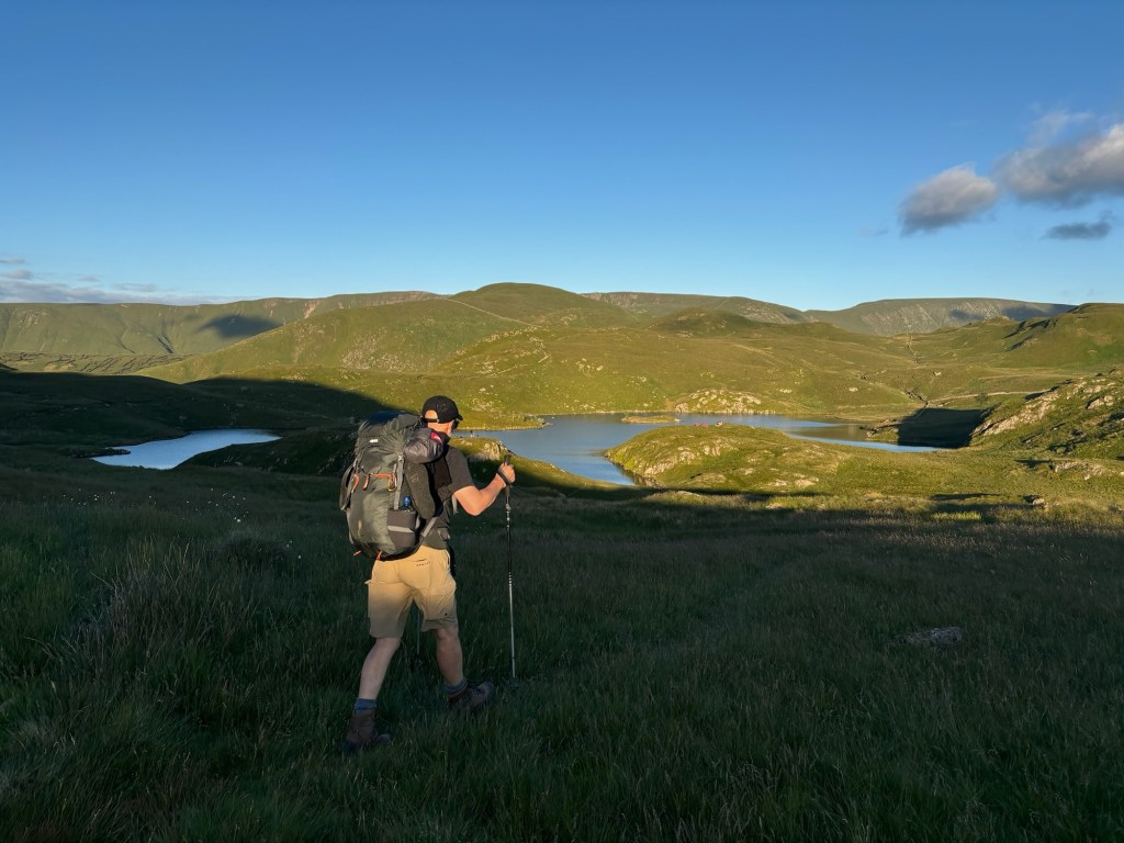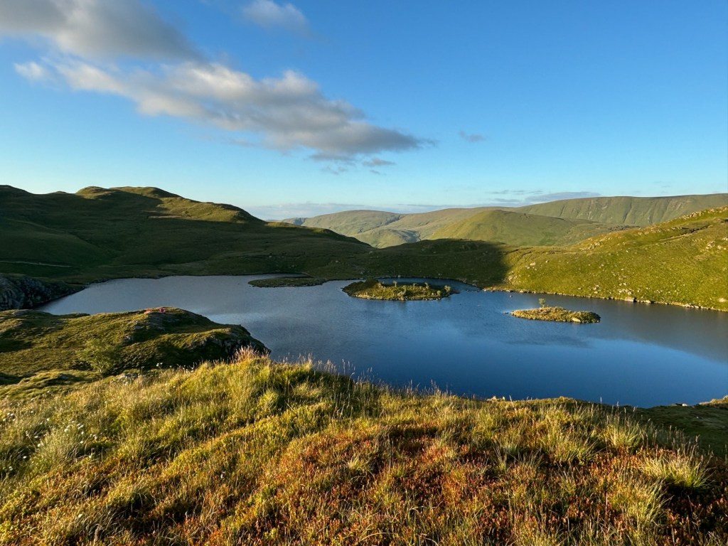 By about 6pm we had reached the official end of the stage in the village of Patterdale. We found a great pub which had everything we needed: charging points for our phones, good food, good beer (Wainwright Gold) and a very friendly barman. We re-charged, fed ourselves and headed off on the final stretch to get up to the famous wild-camping spot, Angle Tarn, which was about an hour‘s uphill walk.