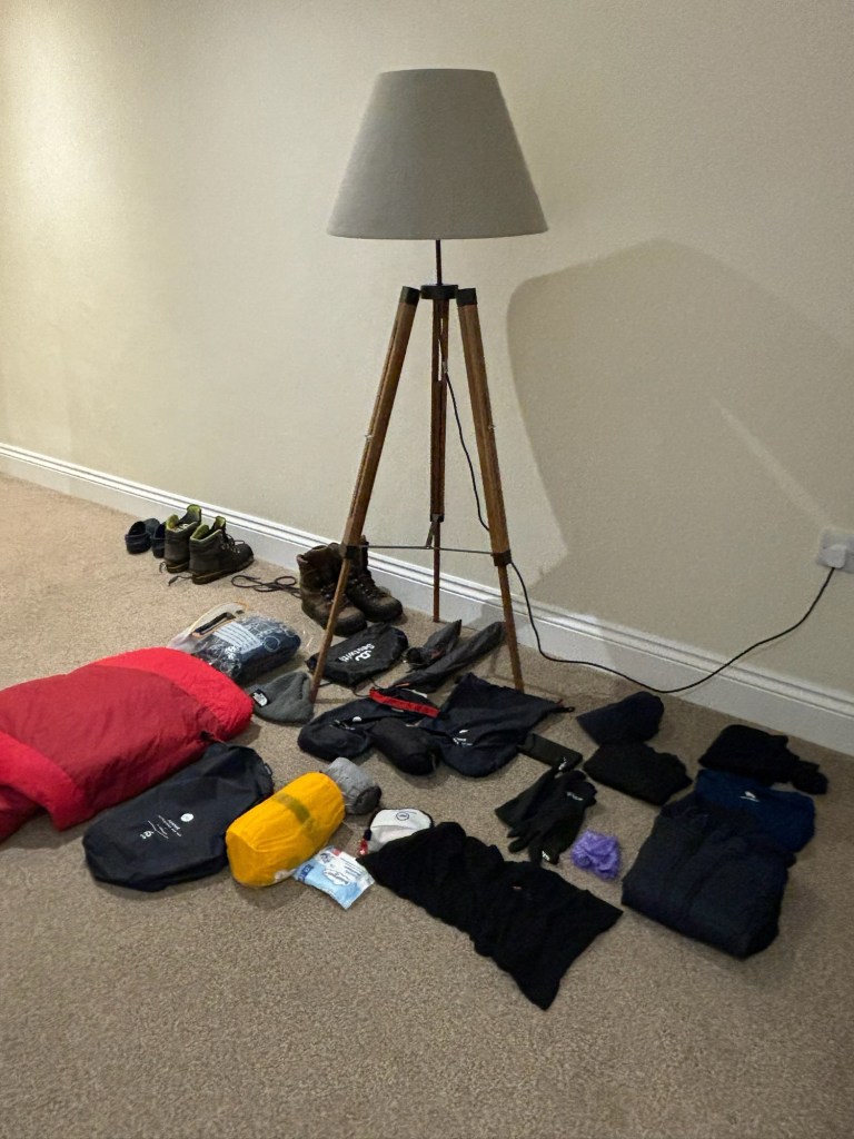 We had been splashing out in the wonderful outdoor shop, Alpkit, in Ilkley and felt we were well set up. We had a lightweight tent, very light sleeping „quilts“, lightweight stove, new rucksacks and reasonably comfy lightweight air mattresses. We‘d decided not to buy new boots but use the walking boots which we were both used to. Lots of merino clothing was hastily purchased (it doesn‘t smell after a few days – or so we were told) and we were ready to go. Our packs weighed just under 10kg including food and water, which was what my friend Graham had told me was a good target to aim for. We felt well prepared and, to be honest, pretty smug.