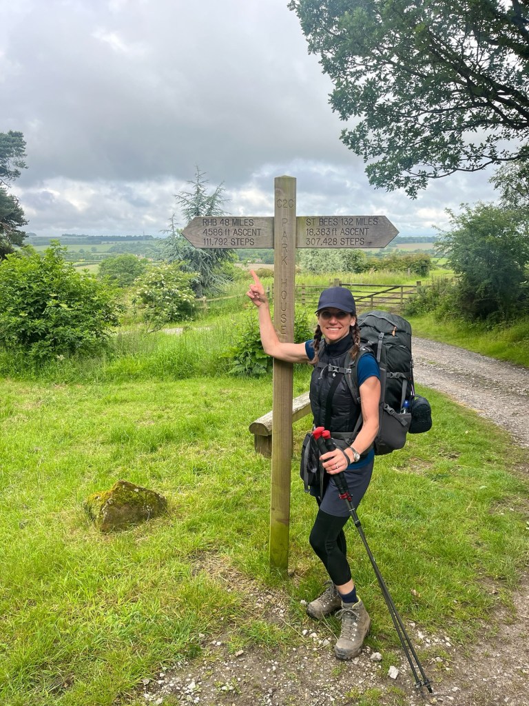 We sorted out our gear on a beer table and packed our bags carefully. James, George and Claire were doing the same on other beer tables. We brewed ourselves a cup of tea but decided on an early start and would reward ourselves with breakfast when we‘d made some progress. We ended up setting off before the others at just after 7am. Although my body felt good, my brain was not firing on all cylinders. We said goodbye to our new friends and as soon as we left the pub beer garden I set off up the wrong road. I quickly realised my mistake and turned us around. As we passed the beer garden again, I was relieved to see James, George and Claire were occupied with packing their rucksacks and hadn‘t witnessed my navigation skills.