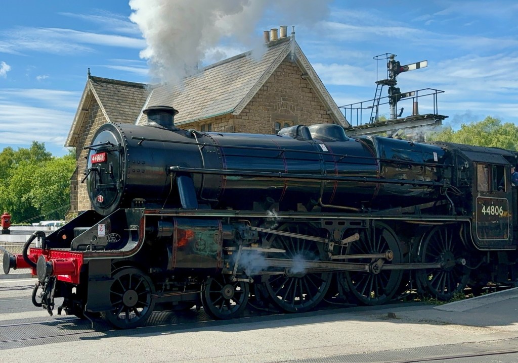 In Grosmont we were all ready for a short rest, so we had shandy and cider outside the Station Tavern. From here we had a great view of a steam train manoeuvring and picking up carriages. Well, I had a good enough view. When we heard the train‘s whistle and the booming sound of a steam engine slowly getting going, Claire and Ariane were out of their seats in no time and jogging down to the railway tracks for the perfect photo. I got up briefly, felt my legs and sat straight back down with my shandy. Ariane could send me the photos.