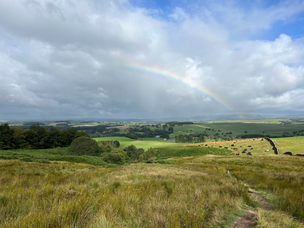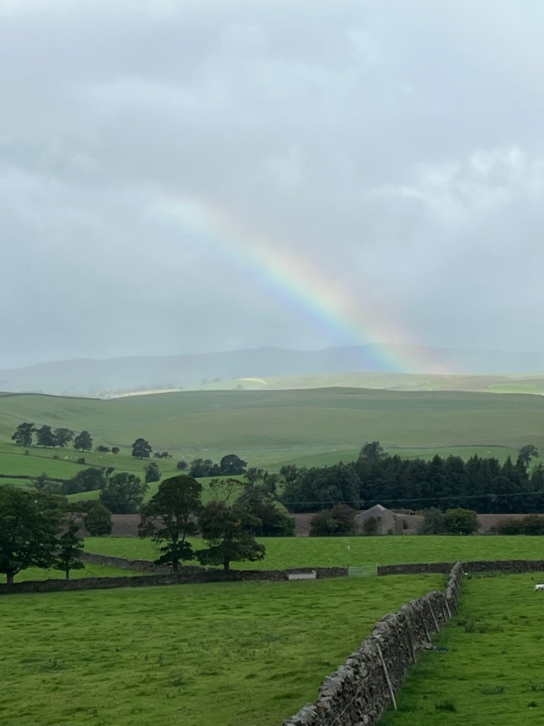 We were so preoccupied with finding a camping spot the evening before, that we hadn‘t really taken in the view. Now we woke to the spectacular sight of the „proper“ Yorkshire Dales on the horizon, punctuated with showers and rainbows. We packed up and headed down the hill, as always relieved not to have upset anyone by „wild camping“ which is not strictly allowed. But as long as we leave only footprints I can handle the tiny amount of guilt.
