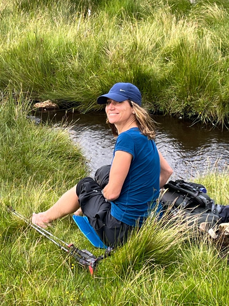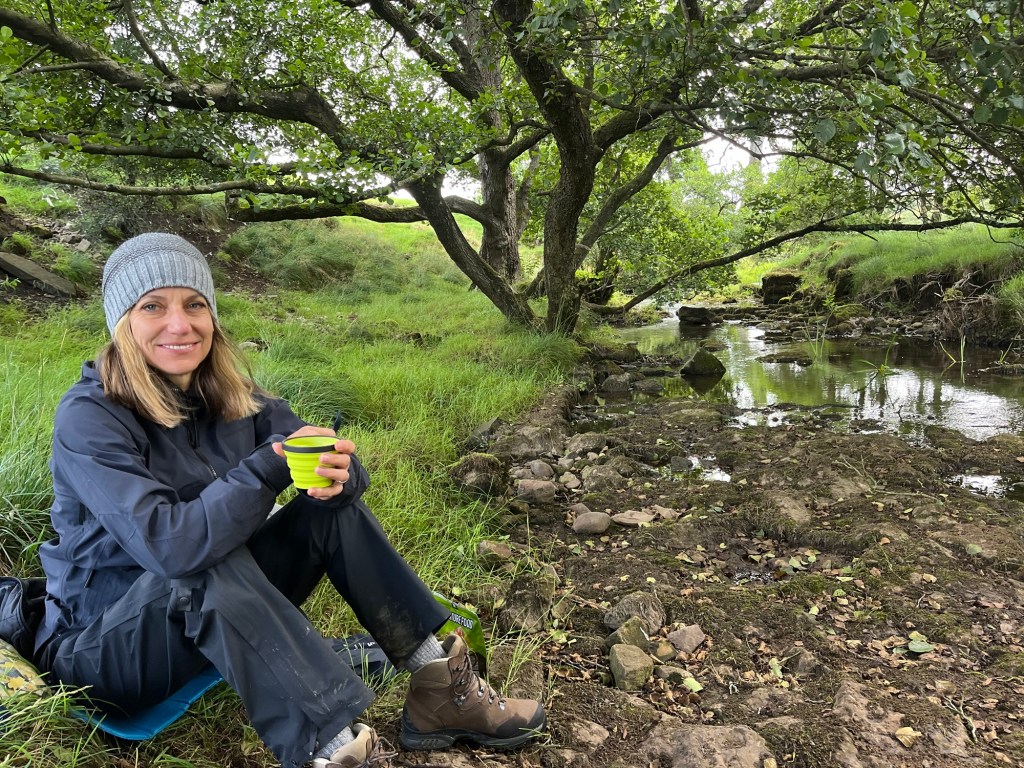 We had breakfast by a stream in the valley. The rain had stopped and the sun came out. We fired up our trusty „Brukit“ gas stove and made coffee and hot porridge. I think this was the first time since starting that we had time to relax for a moment.