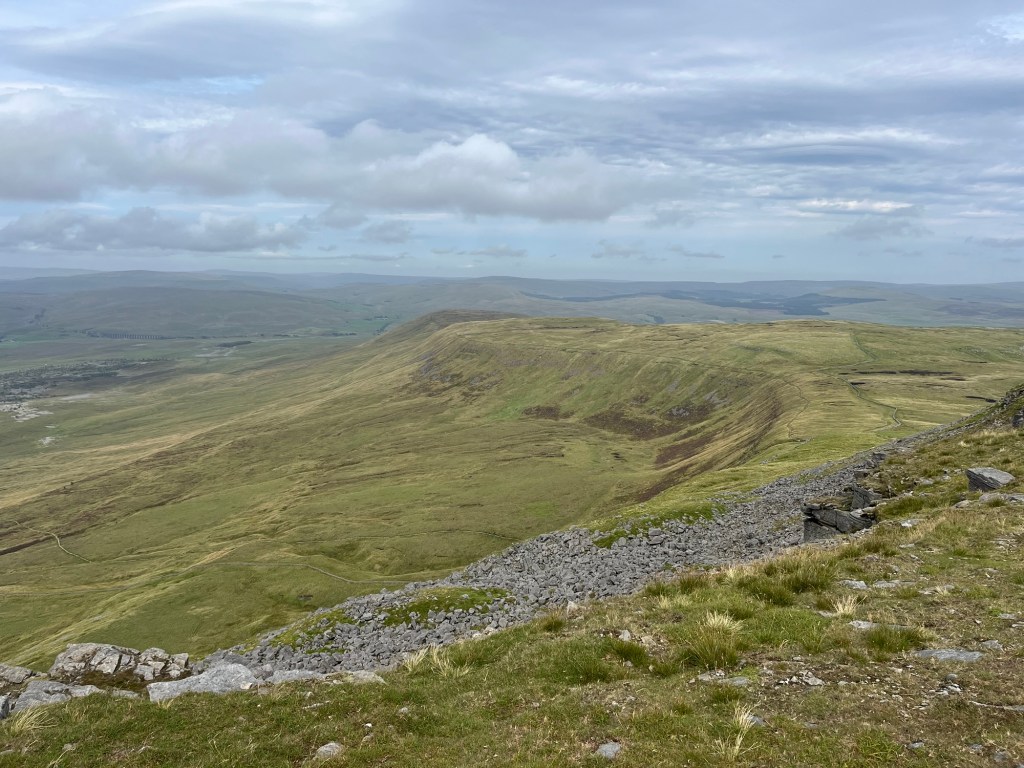We had been quite tired in the morning but picked up the pace as we made the final ascent up Ingleborough. The view was spectacular and we enjoyed a snack bar out of the wind before heading down to our campsite – which we could see from the summit. We knew the descent was a bit nasty, as we‘d done it the year before. But the weather was good, the wind had dropped somewhat and we made good time. Soon we had made the campsite at Chapel-le-Dale and pitched our tent in the sunshine! Unfortunately, the local pub was closed but the campsite had a snack dispenser so we managed to cobble an acceptable dinner together. We had also booked a full english breakfast next morning so we knew that calories wouldn‘t be a problem.