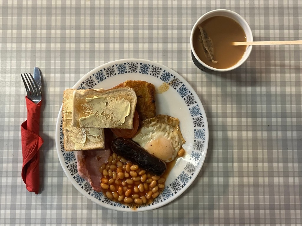 We woke up to the familiar sound of rain on the tent. After the now well-rehearsed packing of gear in the tent, we headed to the campsite barn for a full english breakfast. We were on our own and had plenty of space to pack our gear properly. We knew we had a hard, wet hike ahead of us but it still felt good to be setting off with a decent hot breakfast in our bellies and well-packed gear on our backs.