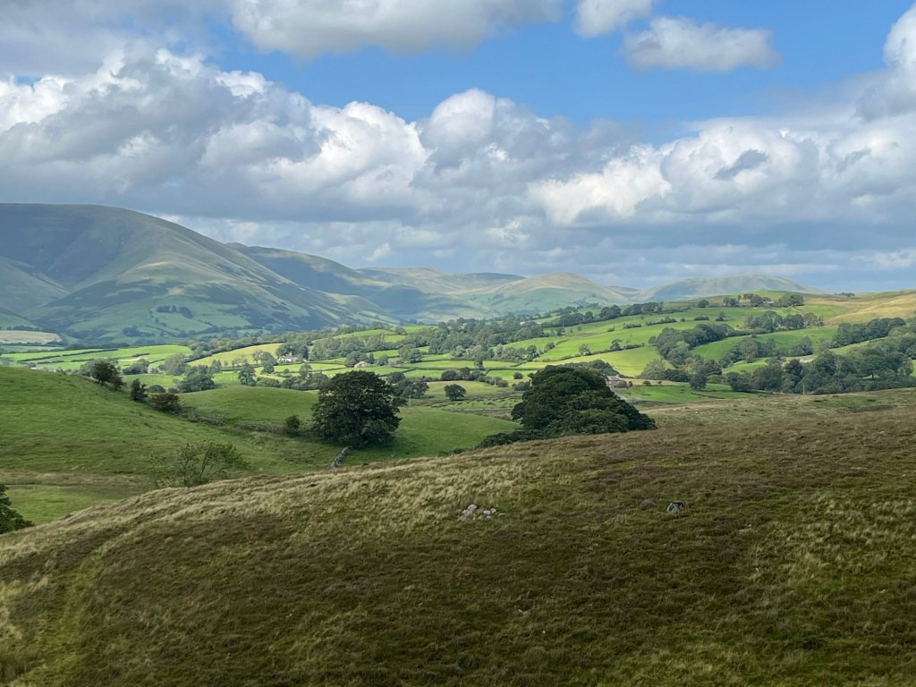 We were saved by the Stone Close Tearooms – a bit more expensive than a pub lunch, but excellent food and they even served beer. We filled up and set off in the improving weather towards Sedbergh. In the distance we could see the Howgill Fells, looking magnificent in the afternoon sun. We would be walking over the top of them tomorrow.